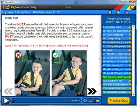 - Interactive tutorial that tells you all about the Theory Test with professional voice-over.
